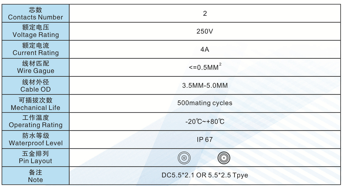 備注(Note): DC5.5*2.1 或者5.5*2.5TPye
