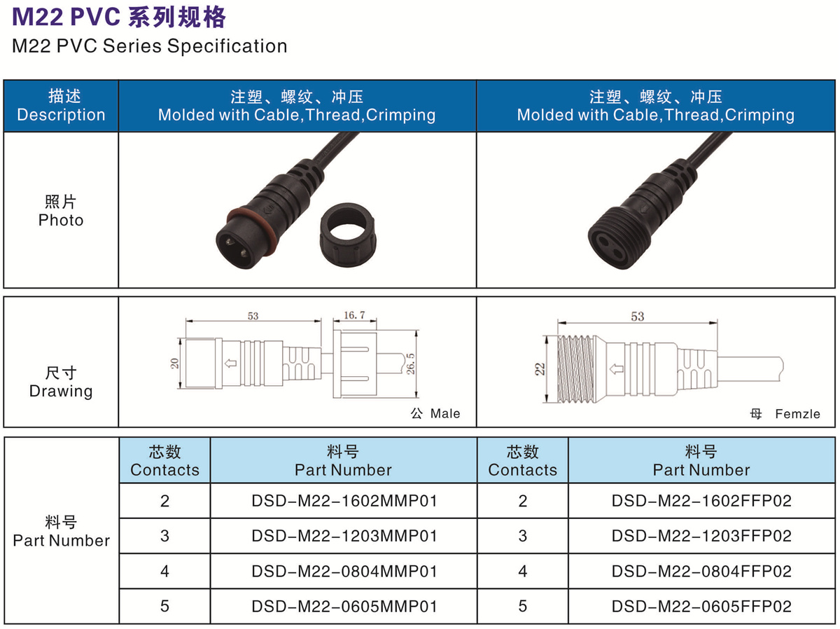 芯數(shù)(Contacts Number): 2 - 5 芯