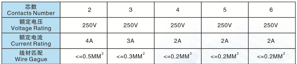 線材匹配(Wire Gague):<=0.5MM2 <=0.3MM2 <=0.2MM2 <=0.2MM2 <=0.2MM2